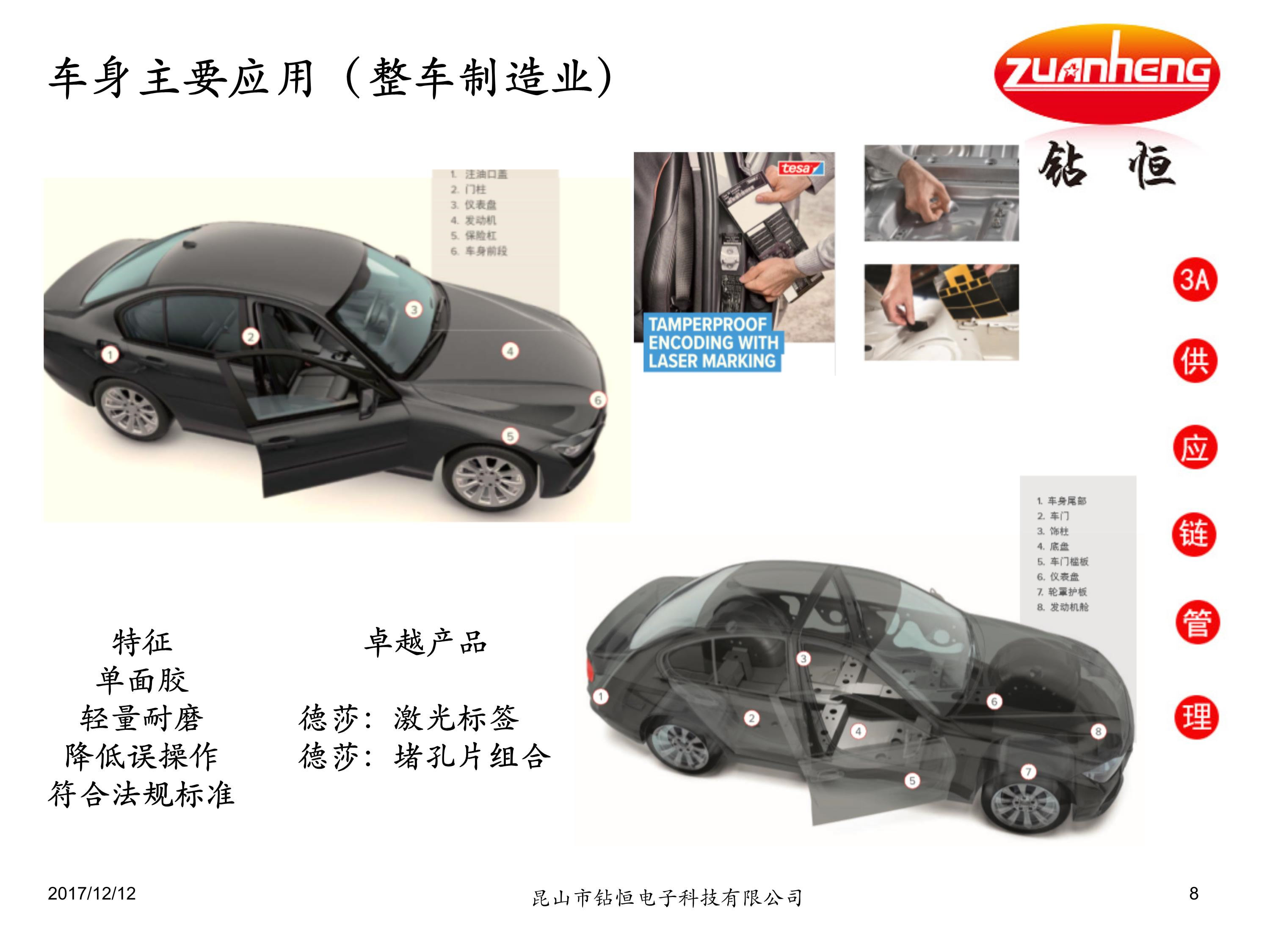 昆山钻恒电子科技有限公司座落于中国经济最发达的长江三角洲-昆山,专业致力于胶粘制品的研发,生产,加工,销售为一体,能第一时间为客户提供专业化的胶粘解决方案,主营tesa胶带,德莎胶带,双面泡棉胶带,绒布胶带,汽车遮蔽胶带,PVC分色胶带,耐高温胶带,透气胶带。