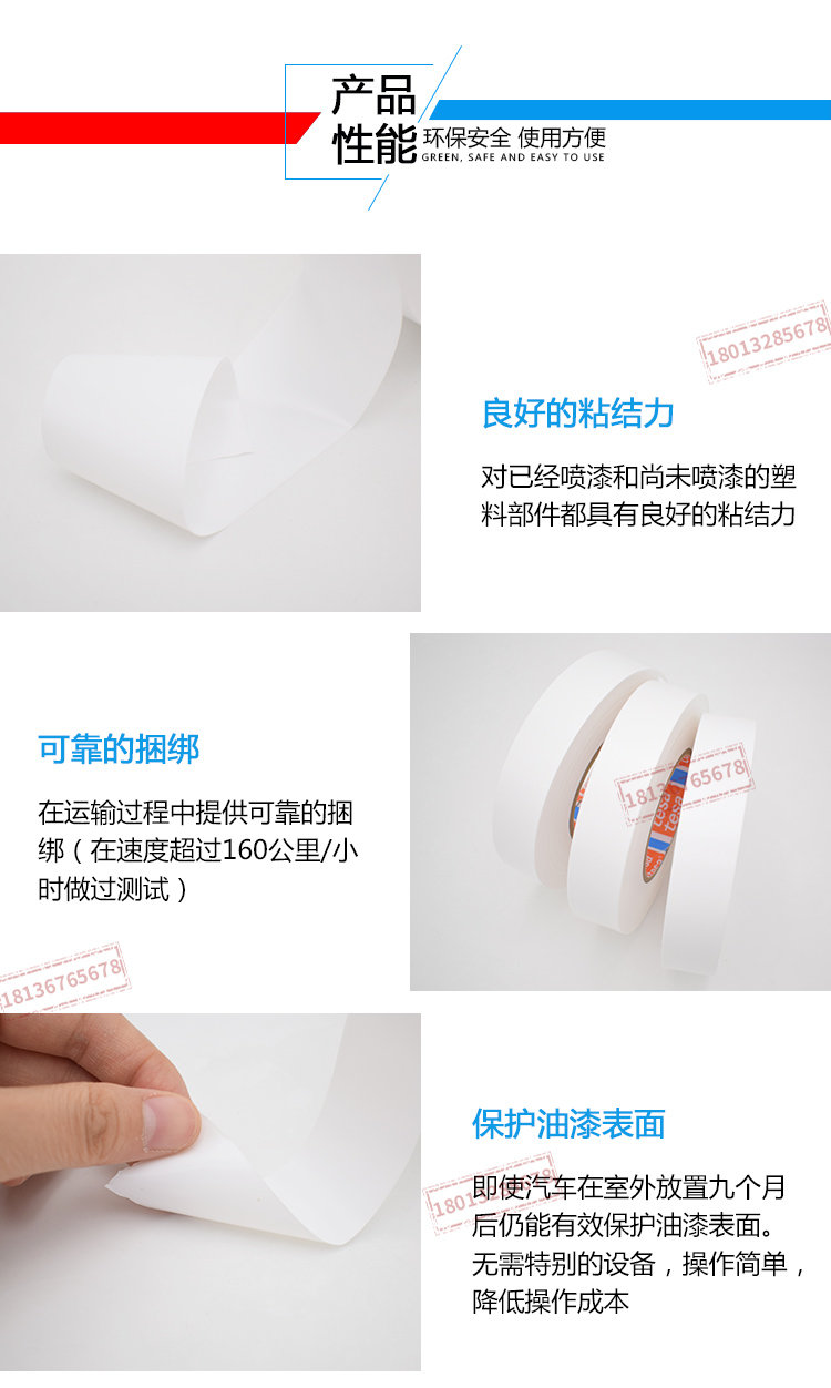 产品描述tesa®车身卫士 50530 PV3是新喷漆车身的最佳表面保护解决方案。在喷漆工序后,使用tesa®车身卫士 50530 PV3,可保护喷漆表面,避免不必要的损伤。tesa®车身卫士 50530 PV3具有优秀的抗UV性能和油漆兼容性,是汽车运输途中保护汽车表面的可靠解决方案。产品性能和优势:可靠的保护运输过程中的