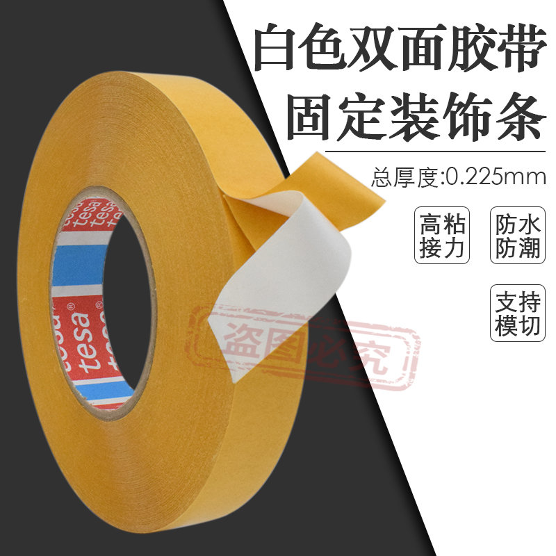 tesa4970双面胶带/德莎4970双面胶带是白色厚双面胶带,由PVC薄膜基材和改性丙烯酸胶系构成。tesa4970特点:优秀的初粘力和立即粘接力较厚的背胶确保即使是在粗糙及不清洁表面仍然具有很好粘接表现完全适用于长期应用固定塑料与木质装饰条固定装饰性的POS机和展台固定标识与刻度范围储存库房保持清洁干燥,温度10℃—30℃储存