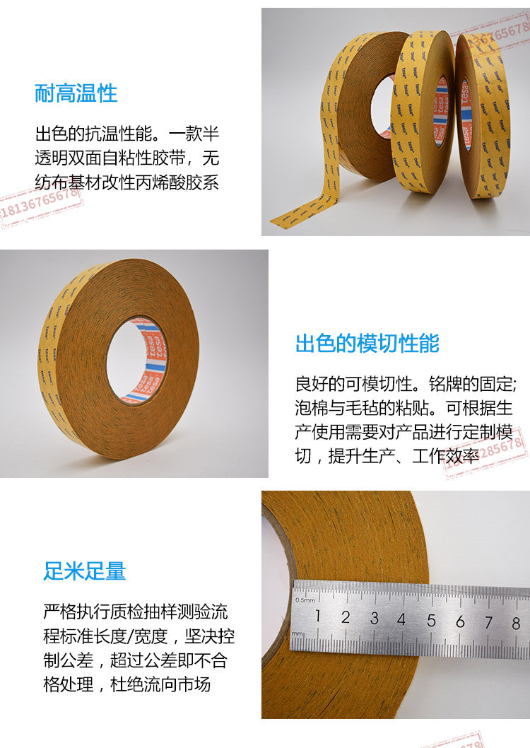 昆山钻恒电子科技有限公司座落于中国经济最发达的长江三角洲-昆山,专业致力于胶粘制品的研发,生产,加工,销售为一体,能第一时间为客户提供专业化的胶粘解决方案,主营tesa胶带,德莎胶带,双面泡棉胶带,绒布胶带,汽车遮蔽胶带,PVC分色胶带,耐高温胶带,透气胶带。