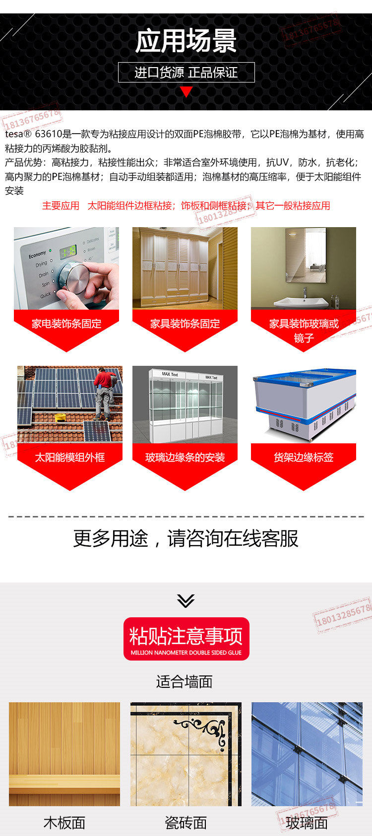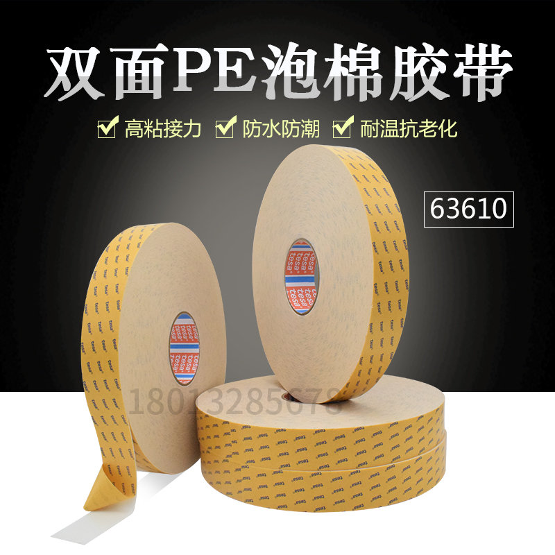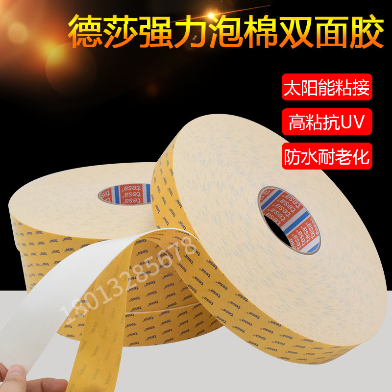 厚度1mm的PE泡棉双面胶带tesa63610是一款专为粘接应用设计的双面PE泡棉胶带,它以PE泡棉为基材,使用高粘接力的丙烯酸为胶黏剂。产品优势:1 高粘接力,粘接性能出众2 非常适合室外环境使用,抗UV,防水,抗老化3 高内聚力的PE泡棉基材4 自动手动组装都适用5 泡棉基材的高压缩率,便于太阳能组件安装主要应用1 太阳能组件边
