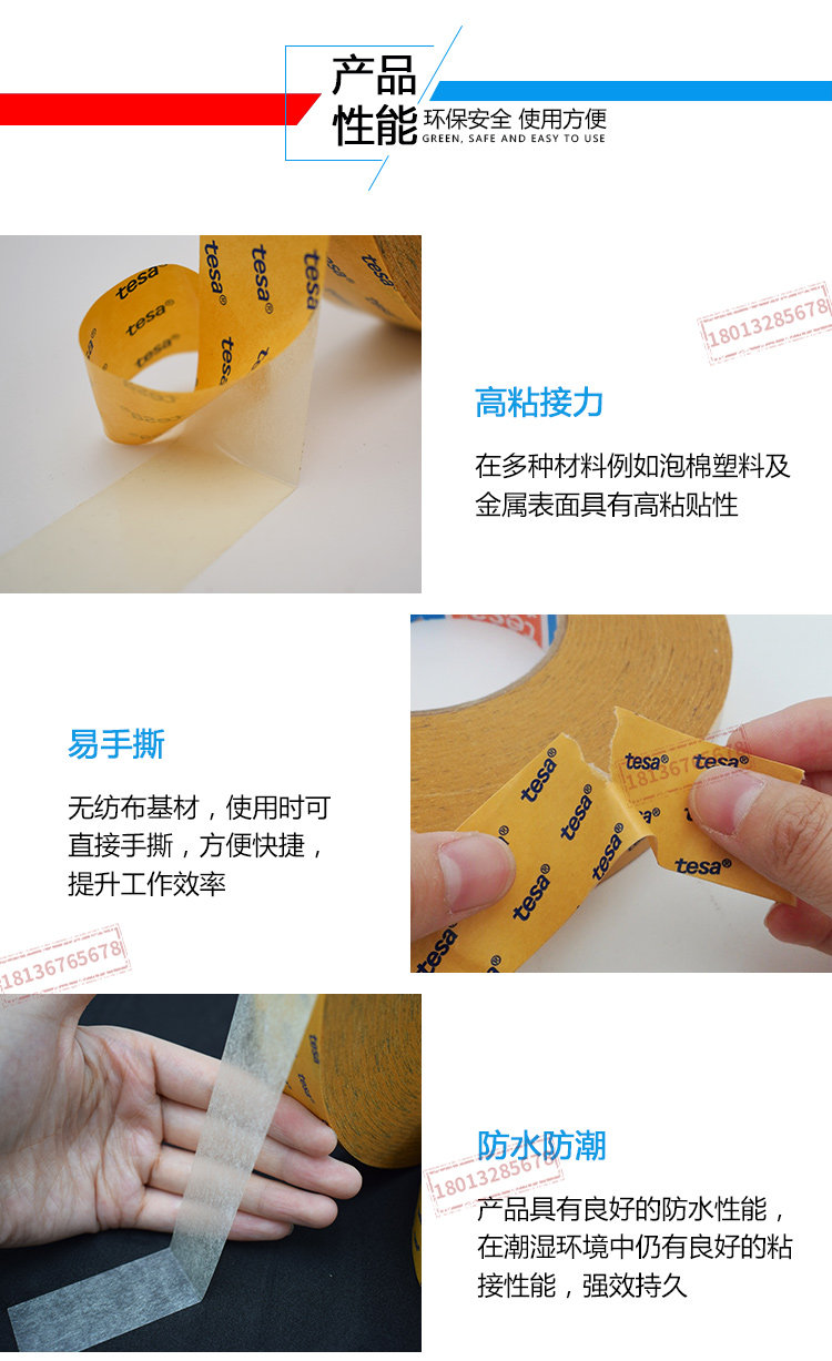 TESA68646是一款半透明双面自粘性胶带,无纺布基材改性丙烯酸胶系TESA68646特性:在多种材料例如泡棉塑料及金属表面具有高粘贴性,优秀的抗温性能,良好的可模切性技术参数基材无纺布颜色半透明总厚度140 µm粘合剂类型改性丙烯酸零部件组装粘贴到电子设备中铭牌的固定泡棉与毛毡的粘贴公司名称:昆山钻恒电子科技有限公司联