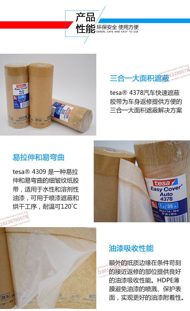 德莎4378汽车车身遮蔽胶带