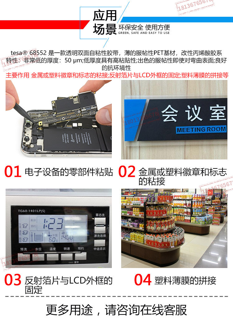 德莎(tesa)68552 50μm双面薄膜胶带 薄的服帖的PET基材