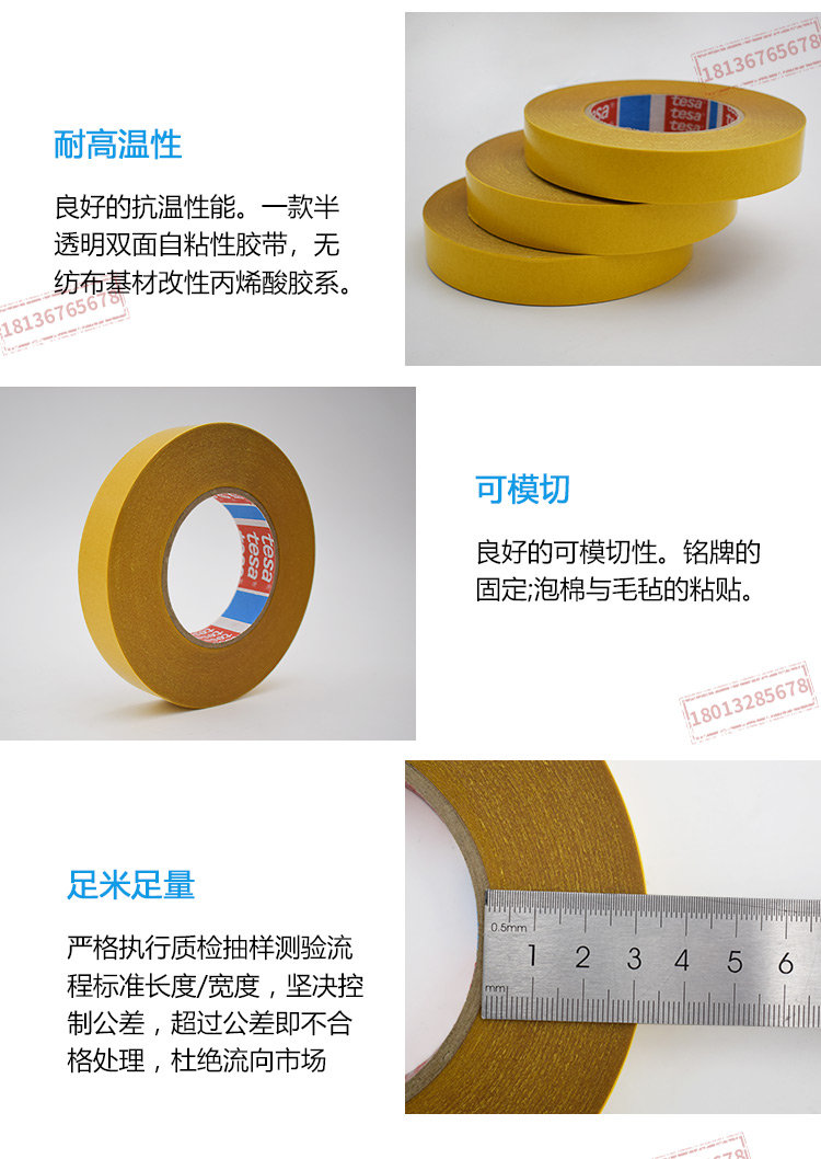 昆山钻恒电子科技有限公司座落于中国经济最发达的长江三角洲-昆山,专业致力于胶粘制品的研发,生产,加工,销售为一体,能第一时间为客户提供专业化的胶粘解决方案,主营tesa胶带,德莎胶带,双面泡棉胶带,绒布胶带,汽车遮蔽胶带,PVC分色胶带,耐高温胶带,透气胶带。
