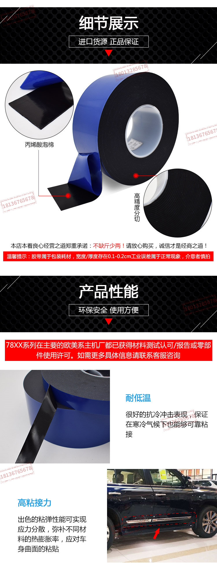德莎7811黑色丙烯酸泡棉胶带适合外饰件的固定