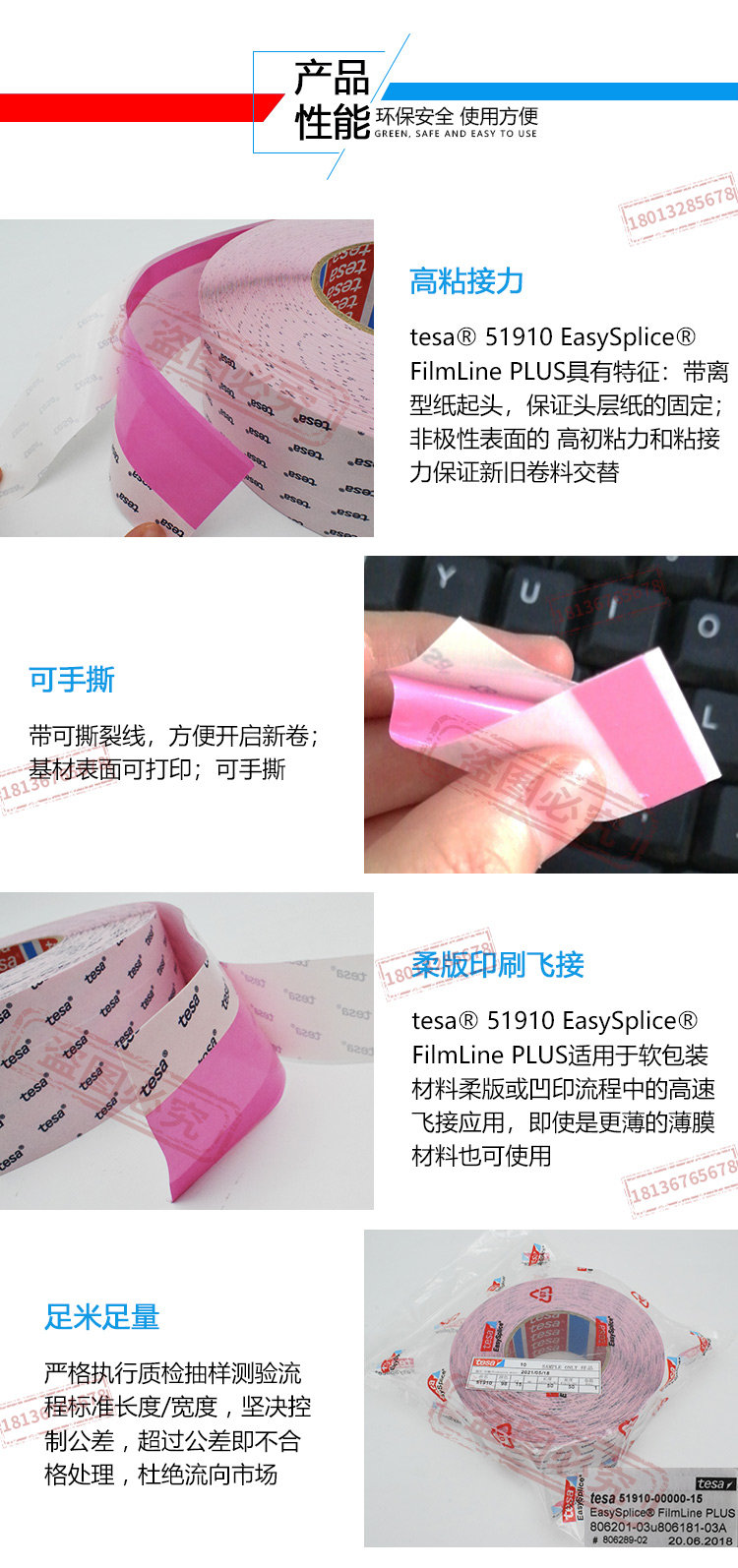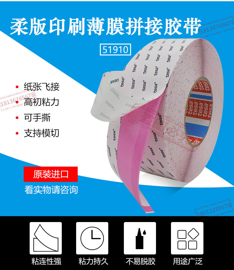 德莎51910接纸胶带粉色纸基材手撕纸厂高速飞接应用超薄38mm*50m