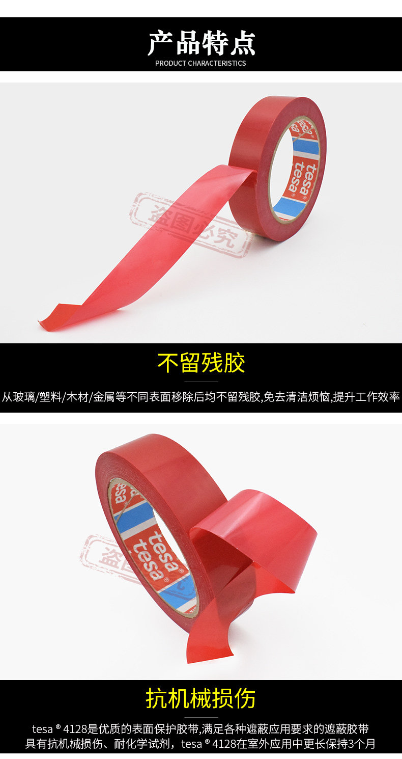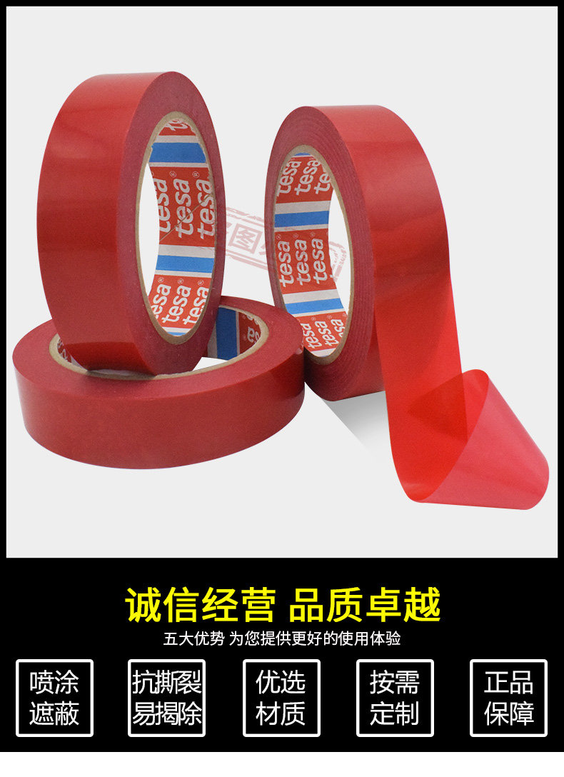 德莎tesa4128红色pvc遮蔽胶带汽车门保险杠顶棚喷漆烤漆遮蔽胶带
