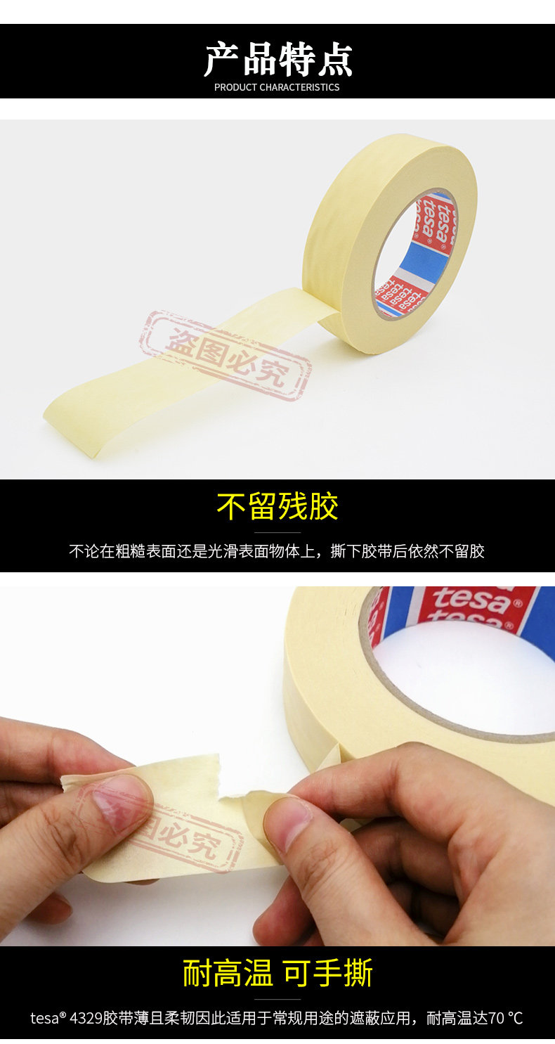 德莎美纹纸胶带tesa4329喷漆遮蔽胶带 汽车业烤漆屏蔽应用胶带