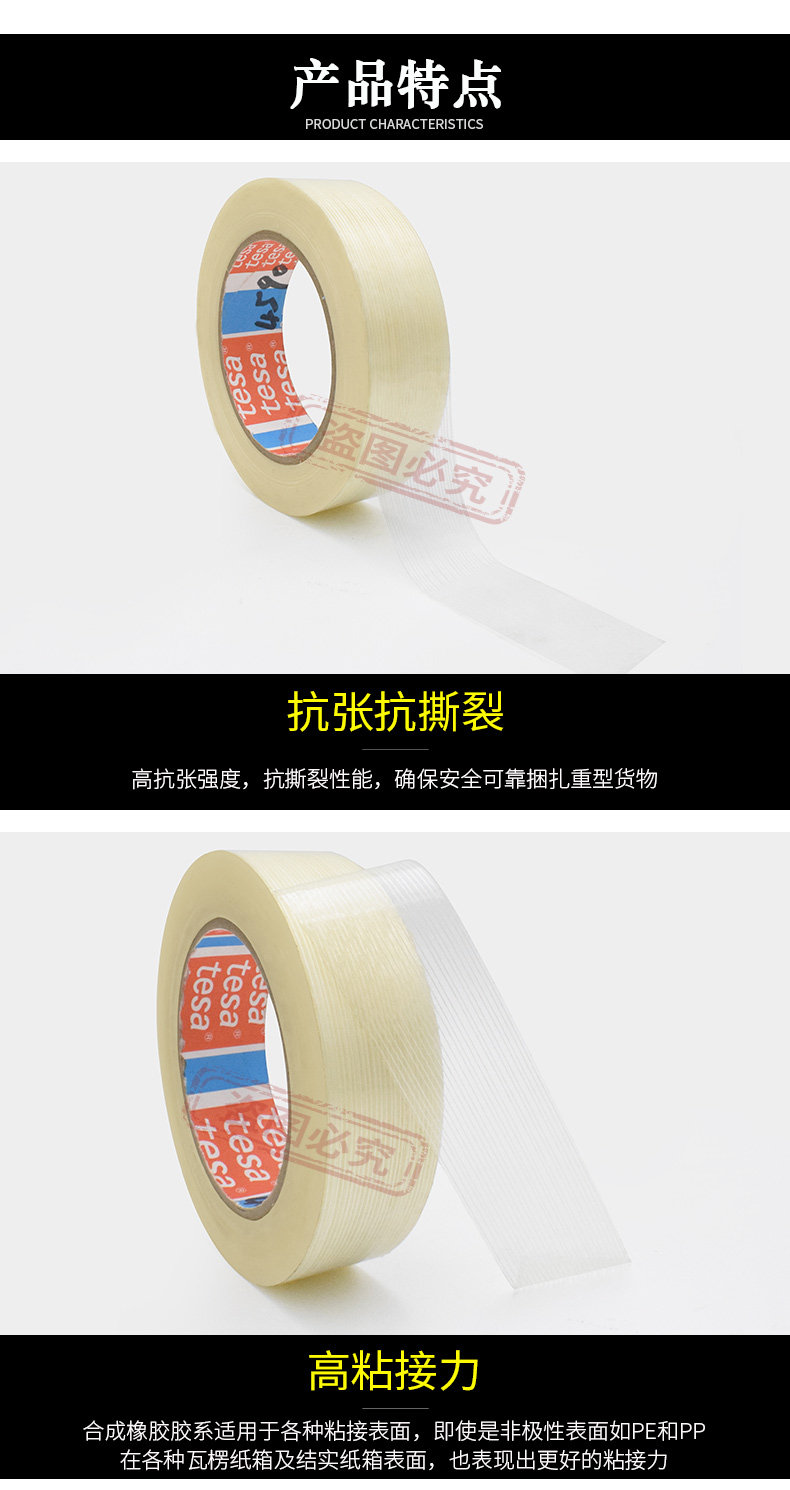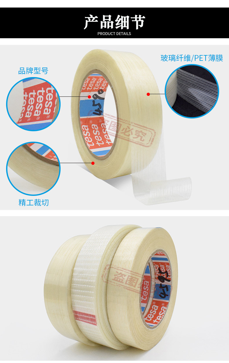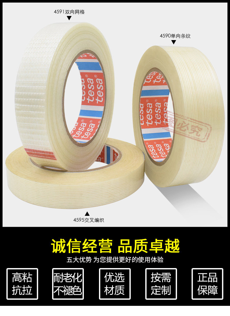 tesa德莎4590单向条纹纤维胶带托盘货捆扎安全运输固定高粘抗撕裂