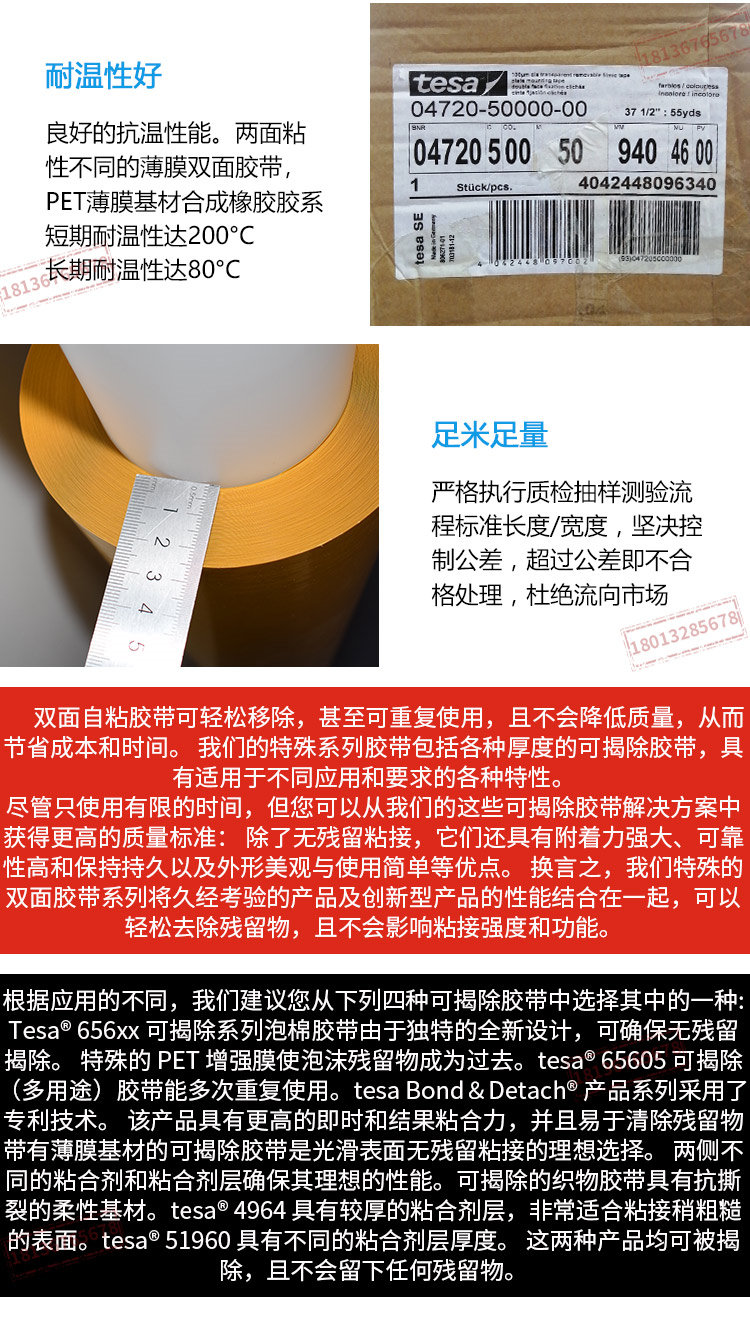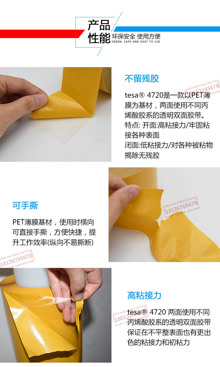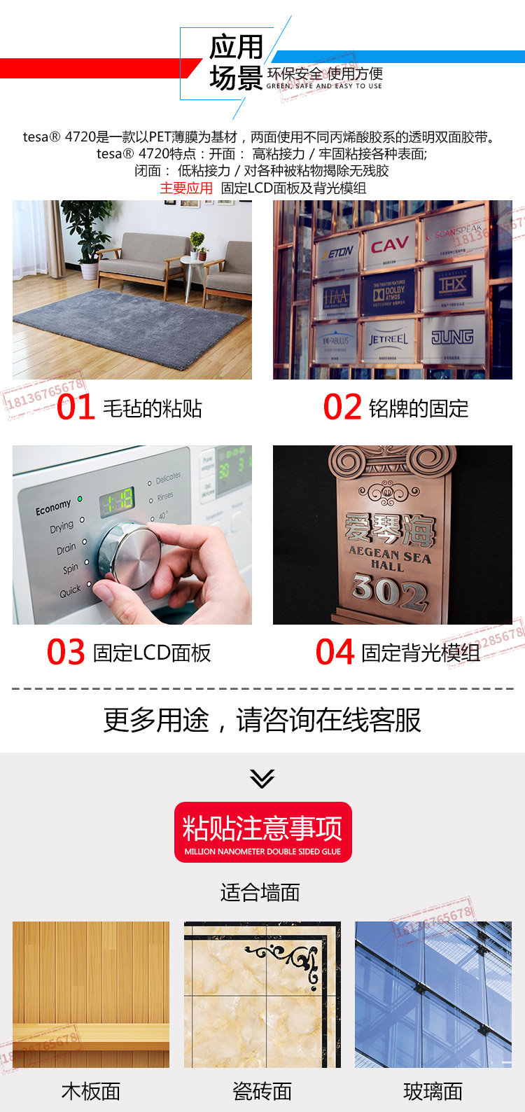 德莎4720强力粘透明双面胶带tesa耐高温PET电子零部件固定LCD面板