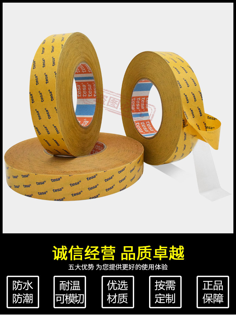 昆山钻恒电子科技有限公司座落于中国经济最发达的长江三角洲-昆山,专业致力于胶粘制品的研发,生产,加工,销售为一体,能第一时间为客户提供专业化的胶粘解决方案,主营tesa胶带,德莎胶带,双面泡棉胶带,绒布胶带,汽车遮蔽胶带,PVC分色胶带,耐高温胶带,透气胶带。