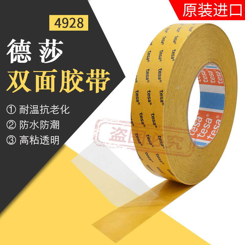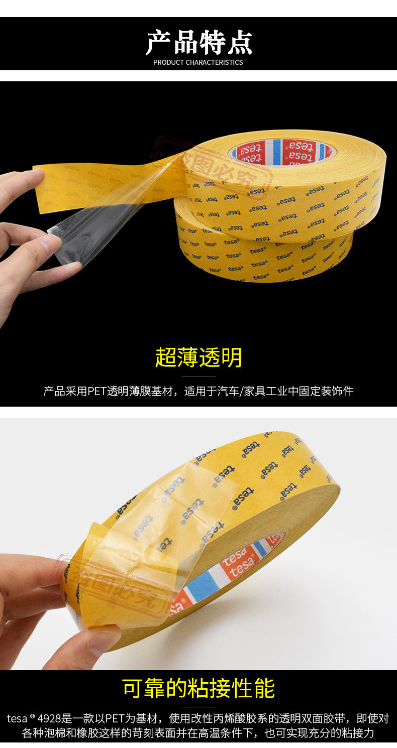 tesa德莎4928耐高温PET透明双面胶带汽车业ABS塑料件电池高粘固定