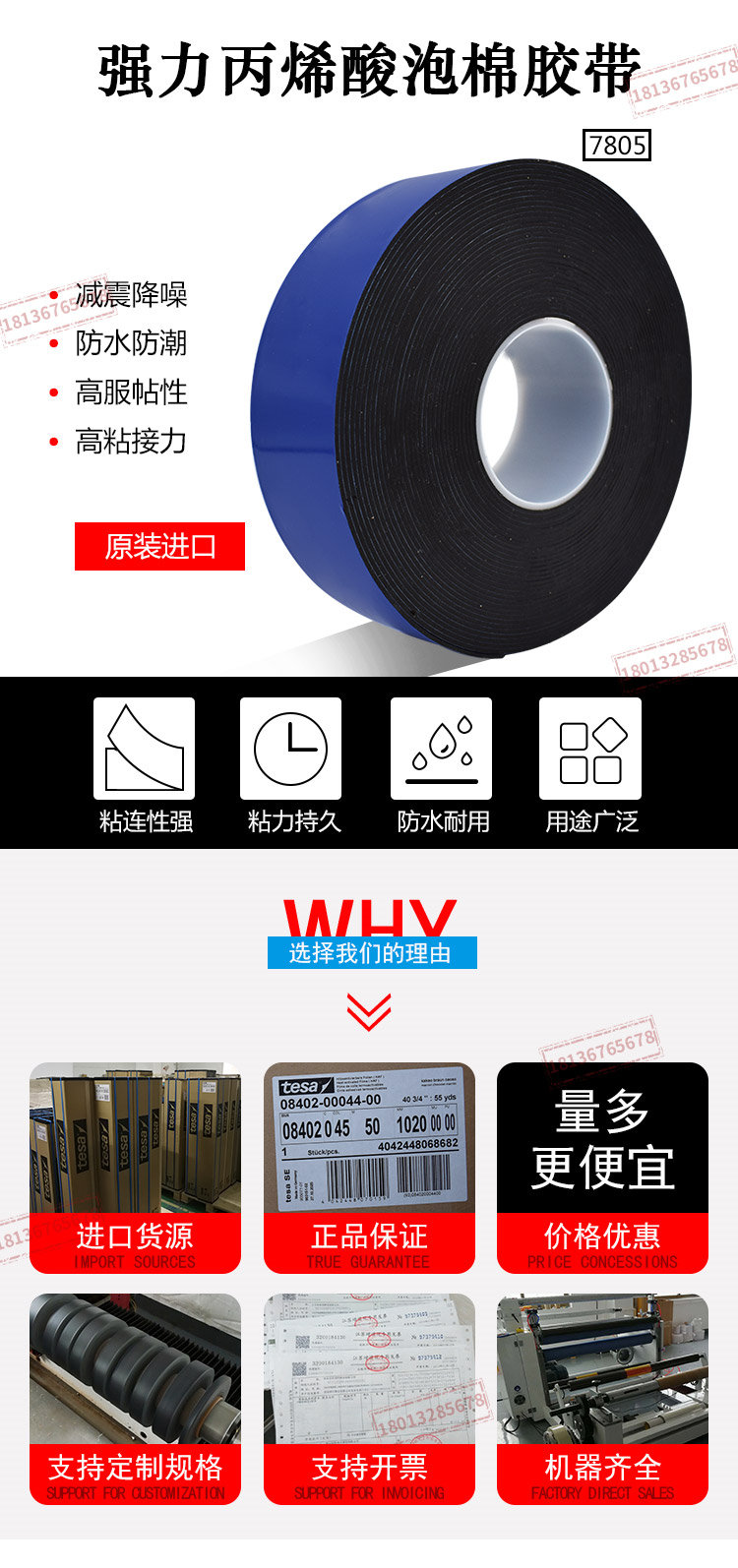 原装德莎tesa7805双面泡棉胶带黑胶汽车铭牌标牌车窗饰条固定高粘