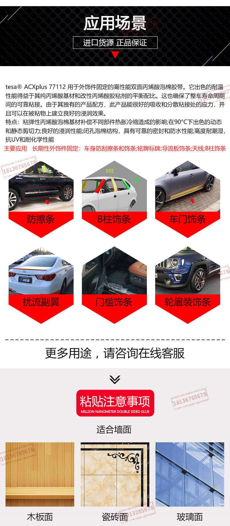 德莎77112tesa高粘黑色海绵双面胶带汽车轮眉防刮擦条外饰件固定