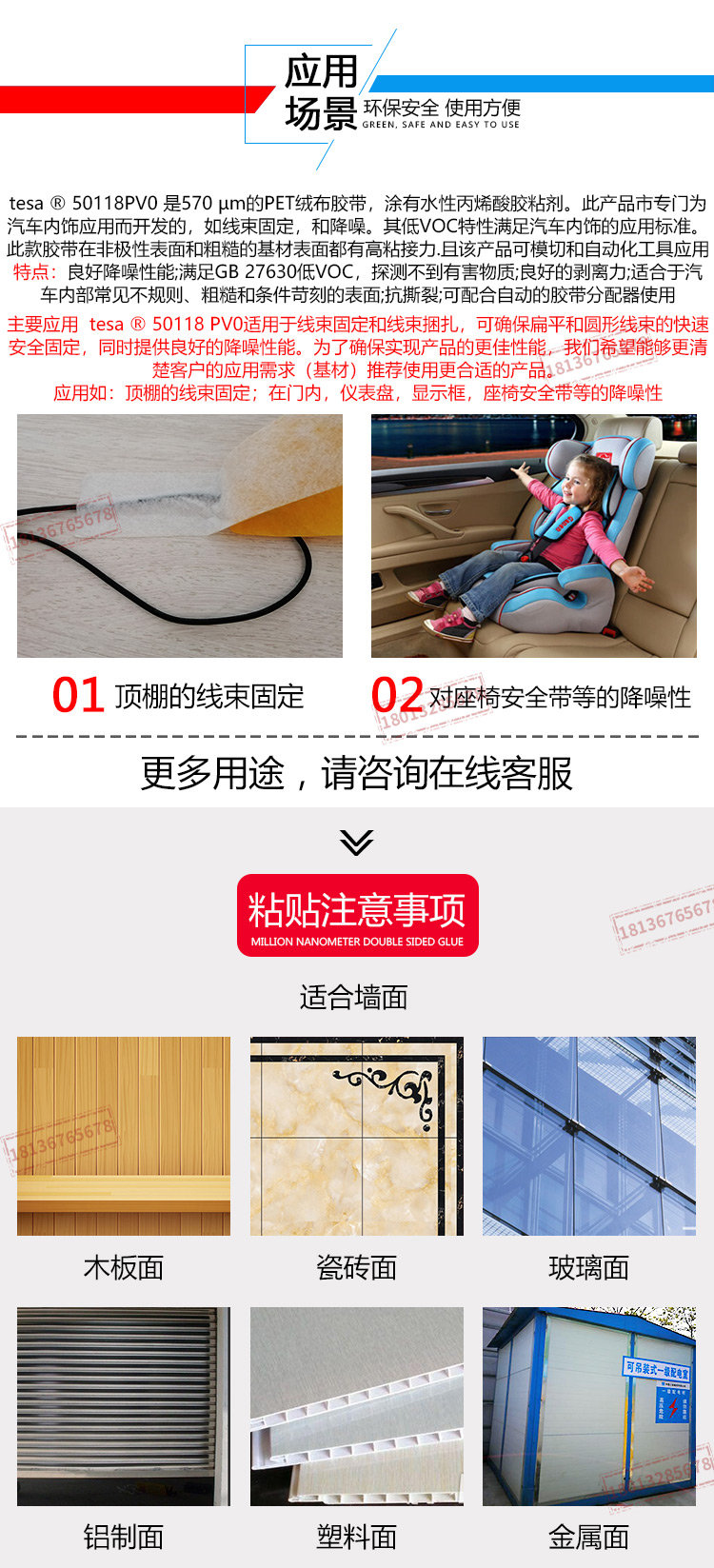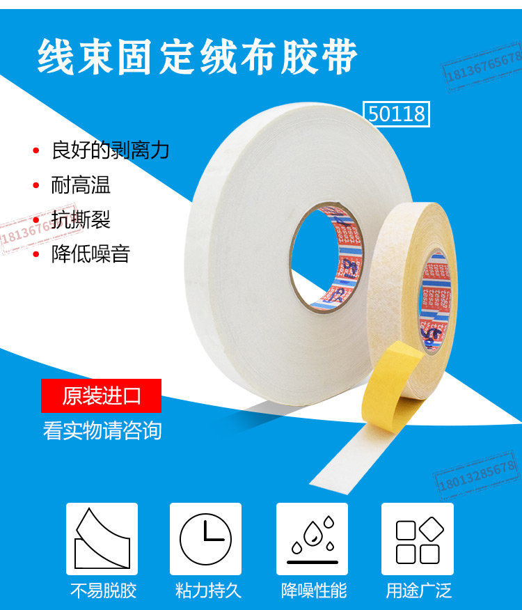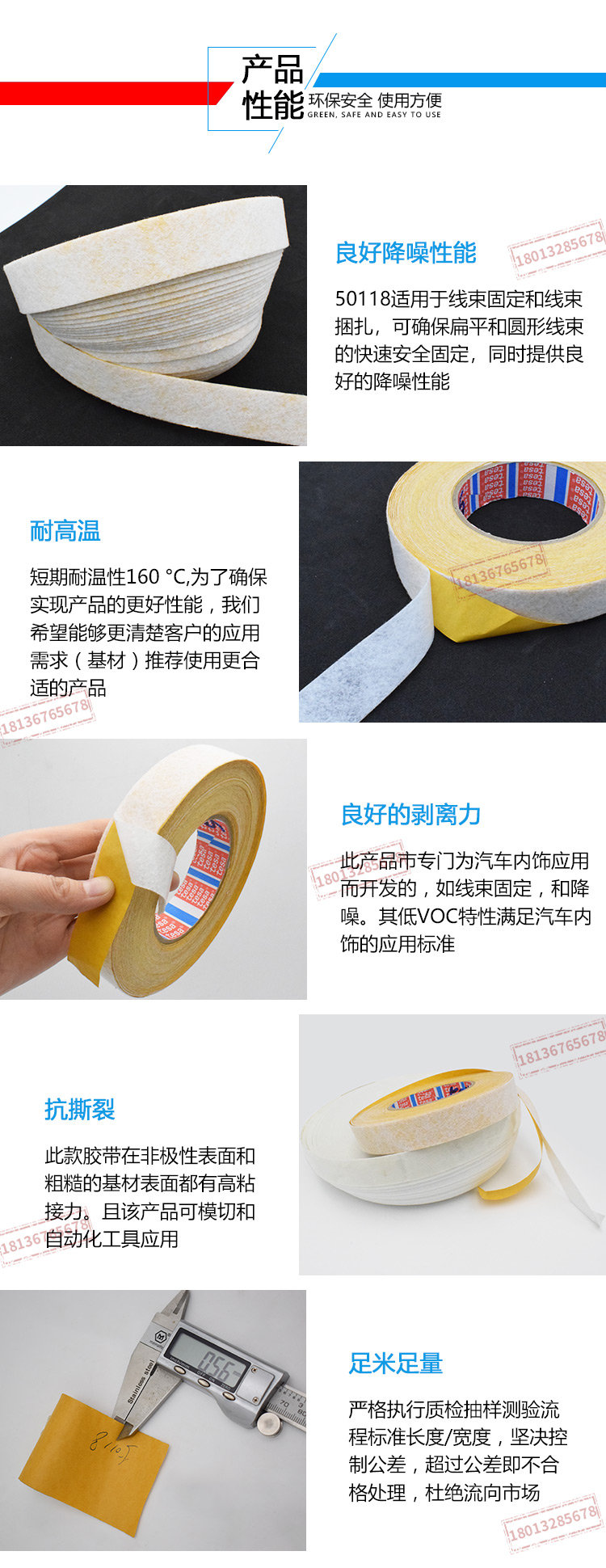 德莎tesa50118低voc汽车内部耐温粗糙绒布胶带降噪音顶棚线束固定