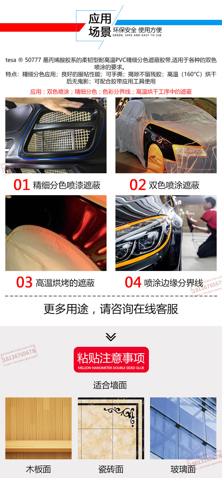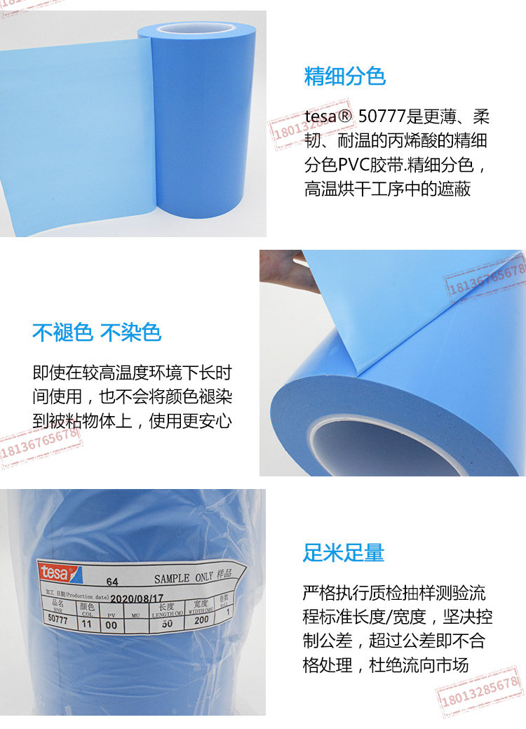 原装正品德莎50777PVC精细分色胶带汽车双色喷涂遮蔽160°C无鬼影