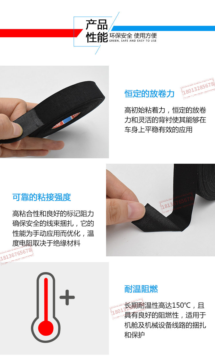 原装正品tesa51006德莎PET布基线束胶带汽车耐高温发动机舱耐磨