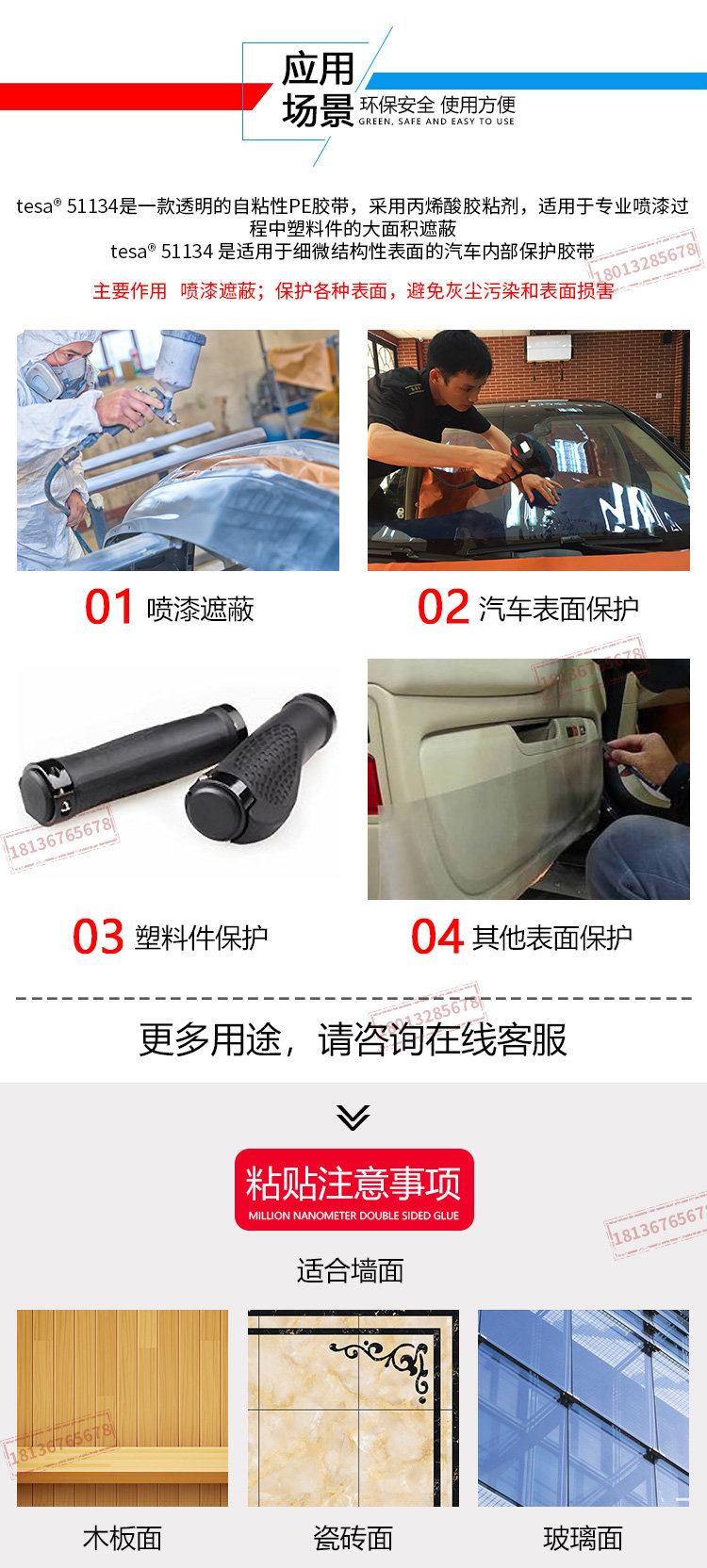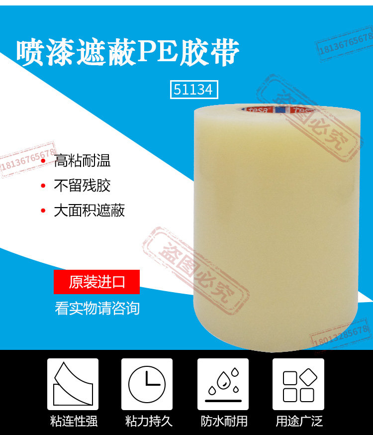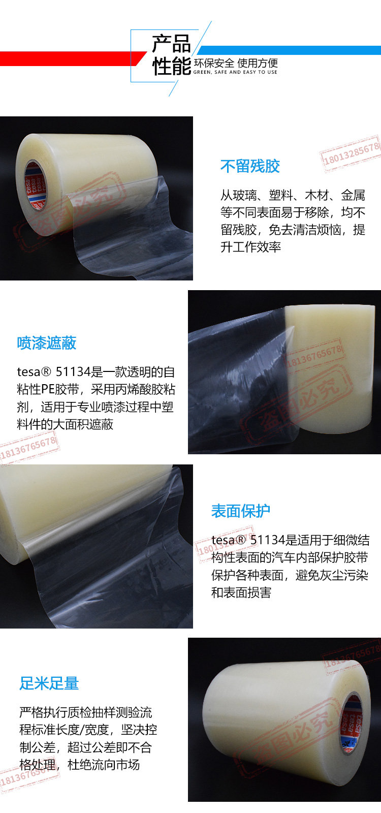 保护膜tesa德莎51134透明自粘性PE喷漆遮蔽箱包金属表面保护胶带
