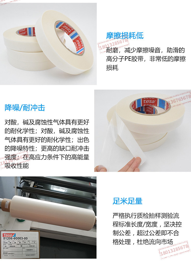 德莎51206 助滑高分子PE胶带耐磨降噪高摩擦区域线束保护白色胶带