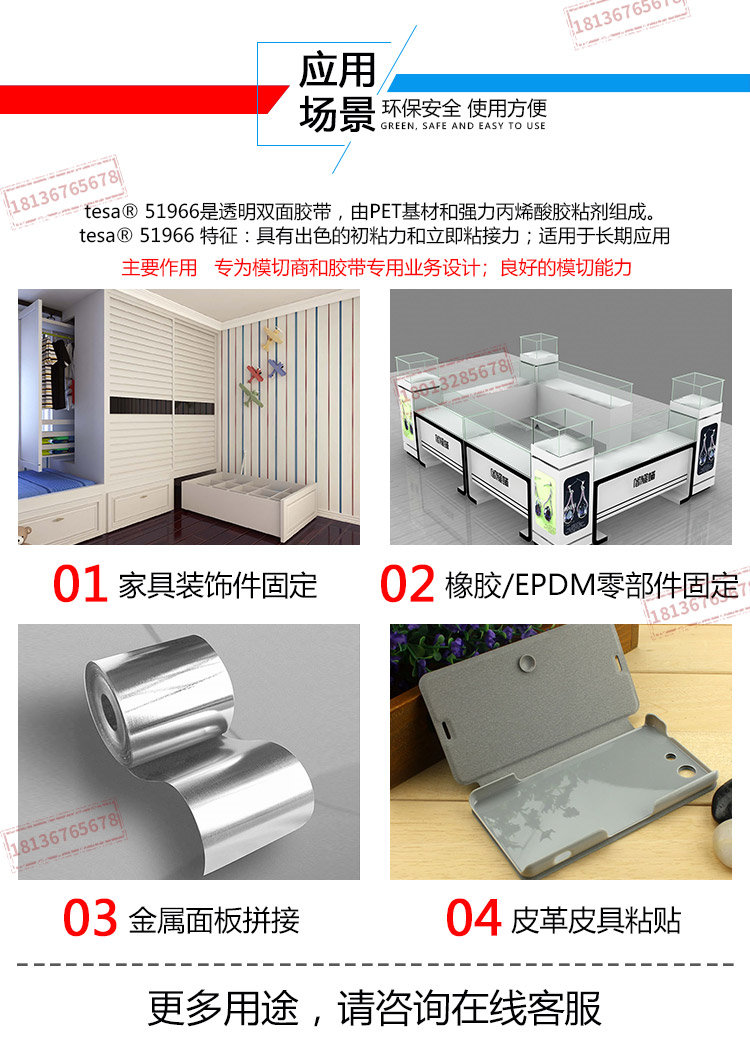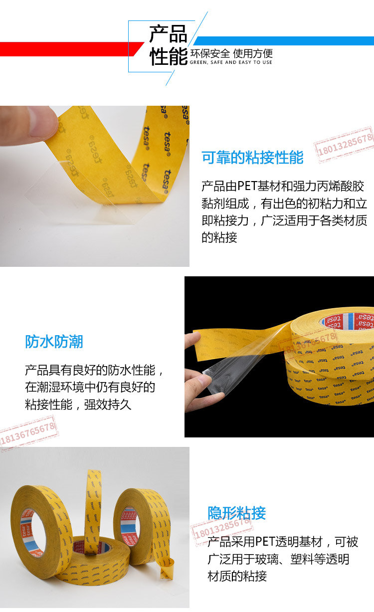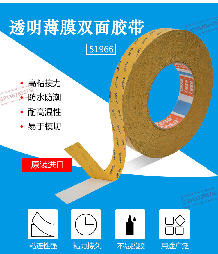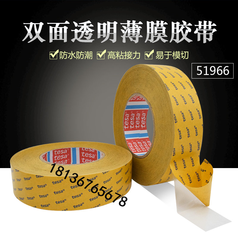 德莎tesa51966透明pet高粘薄膜强力双面胶皮革皮具粘贴固定