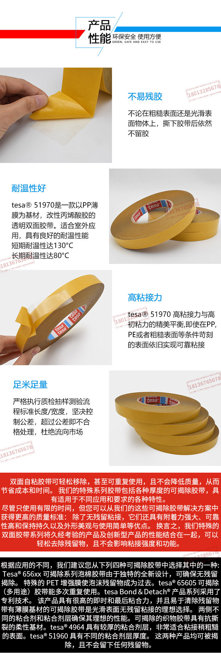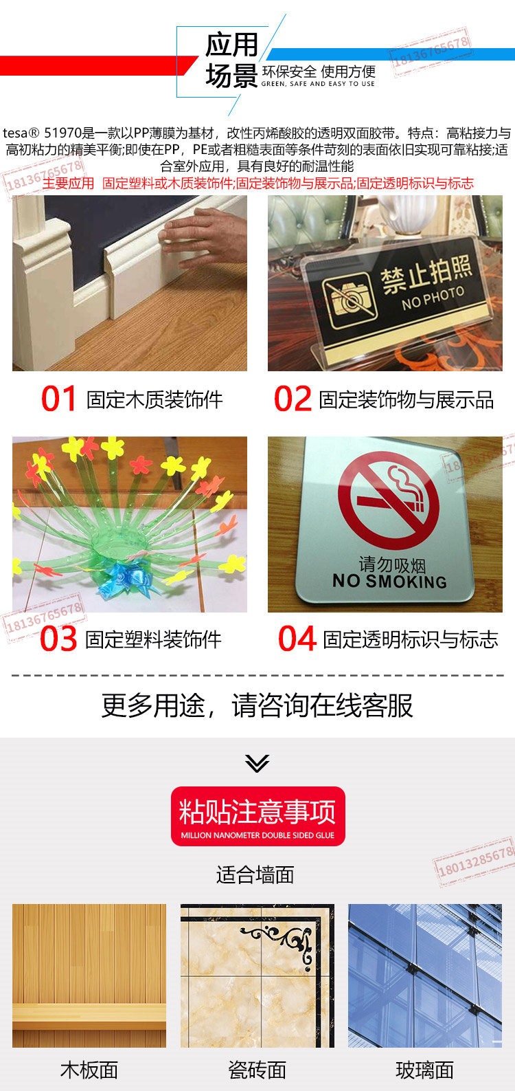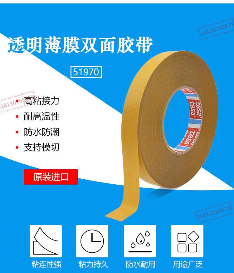 德莎51970透明双面胶带PP薄膜塑件标识物固定高粘可撕tesa双面胶