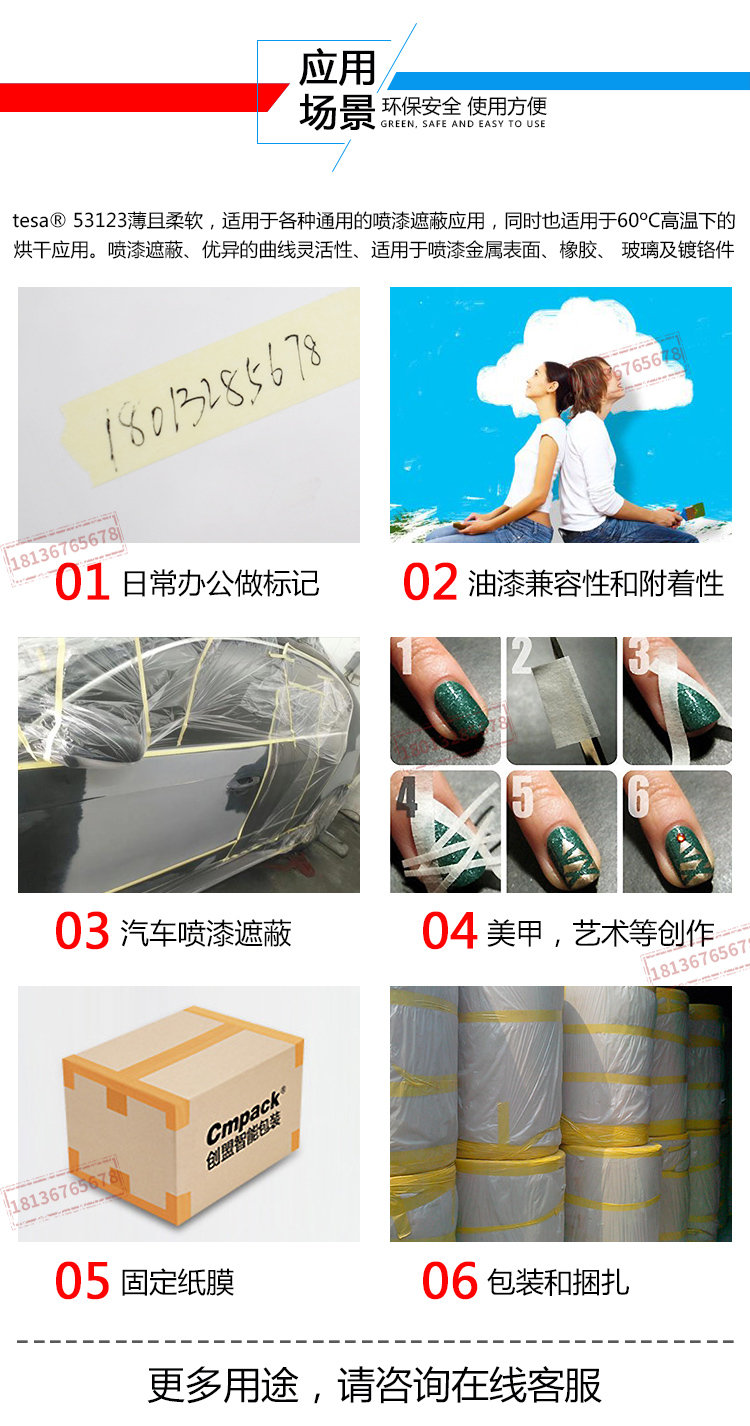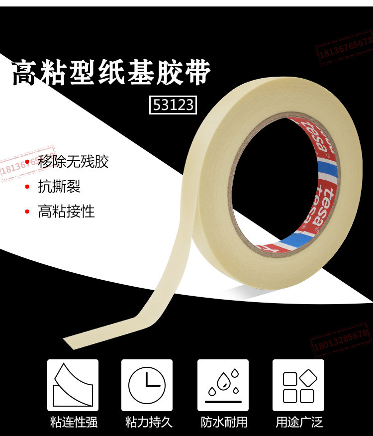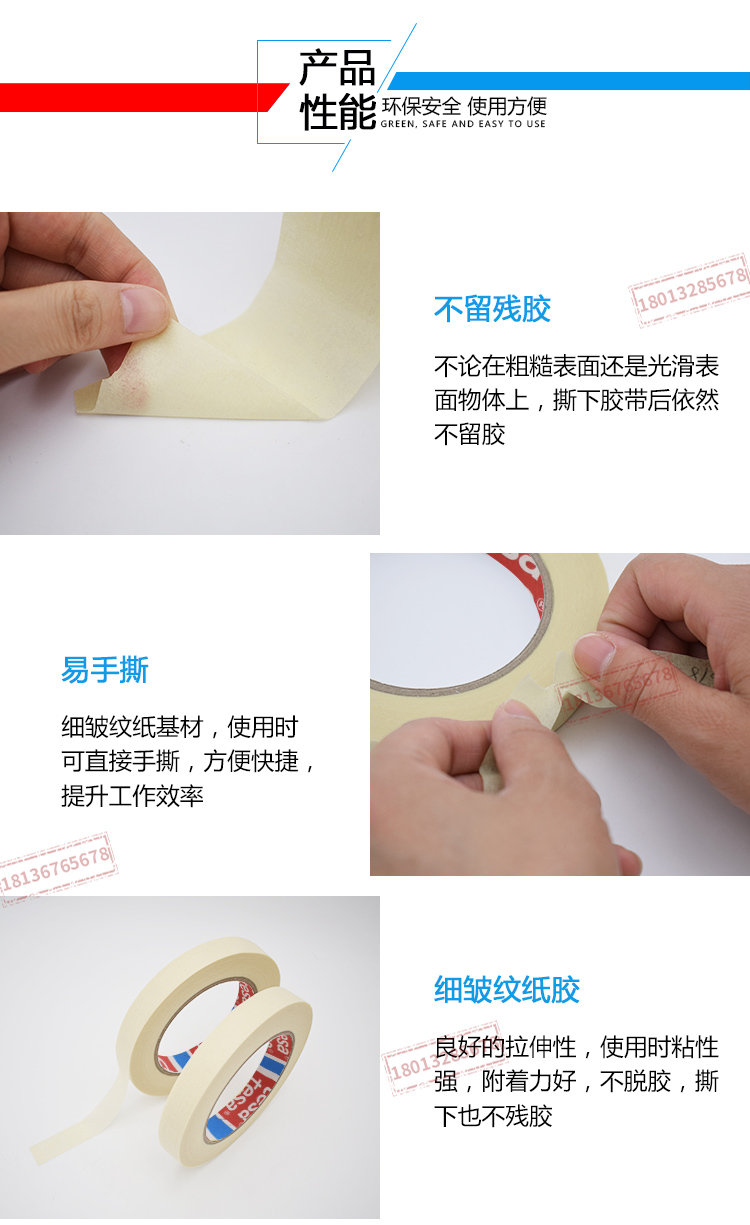 tesa德莎53123进口美纹纸胶带耐温喷漆遮蔽喷砂固定烤漆屏蔽胶带