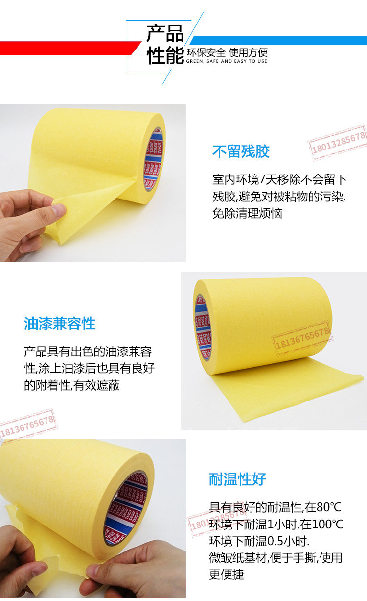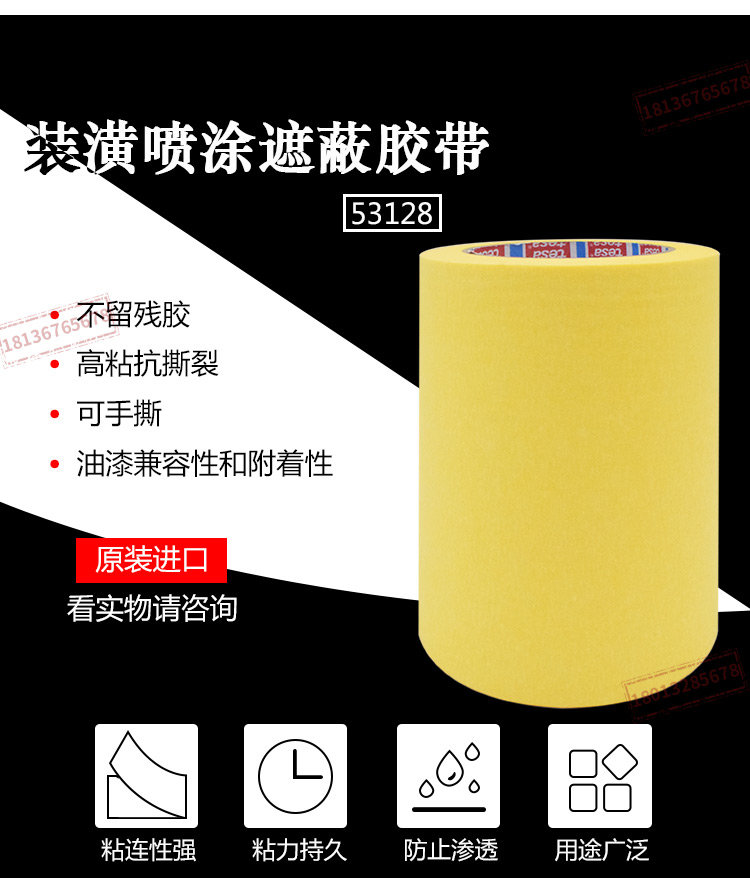 tesa德莎53128 美纹纸胶带喷涂喷漆遮蔽高粘无残胶无痕装修装潢