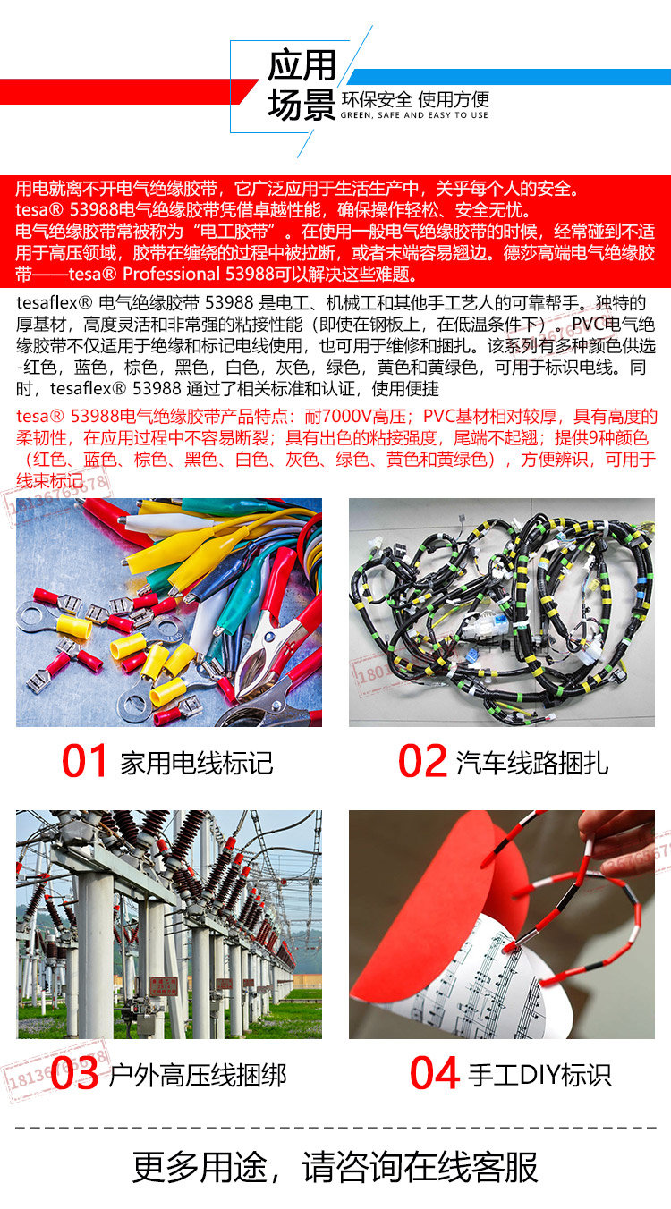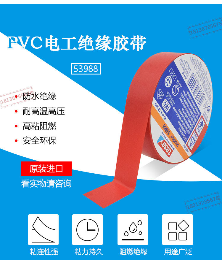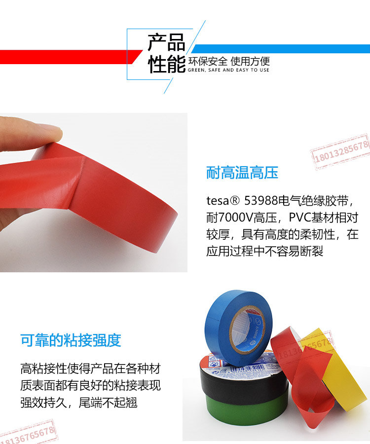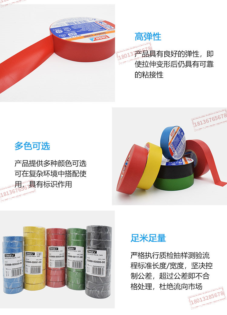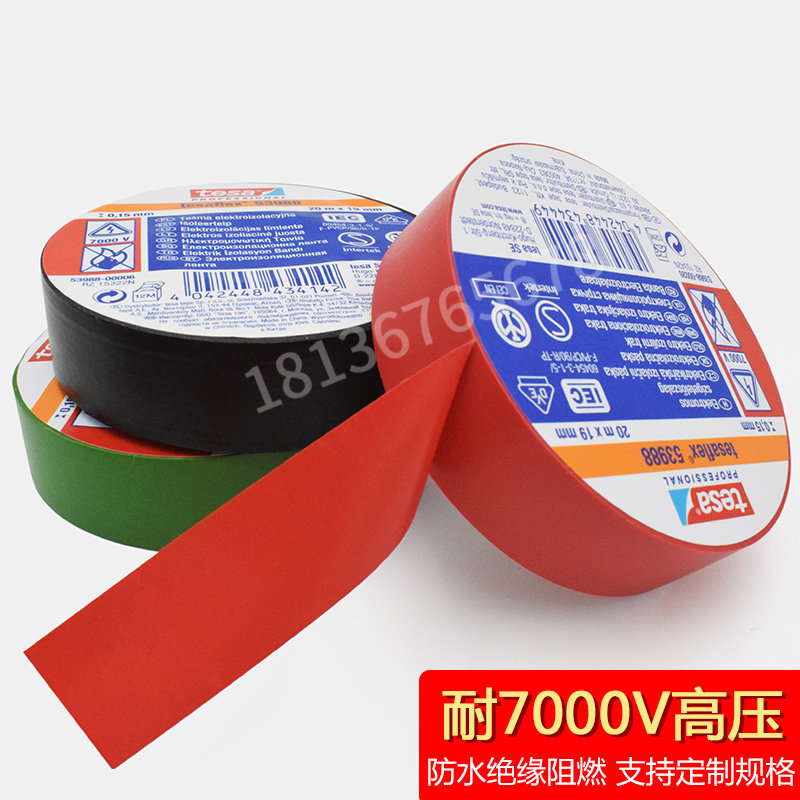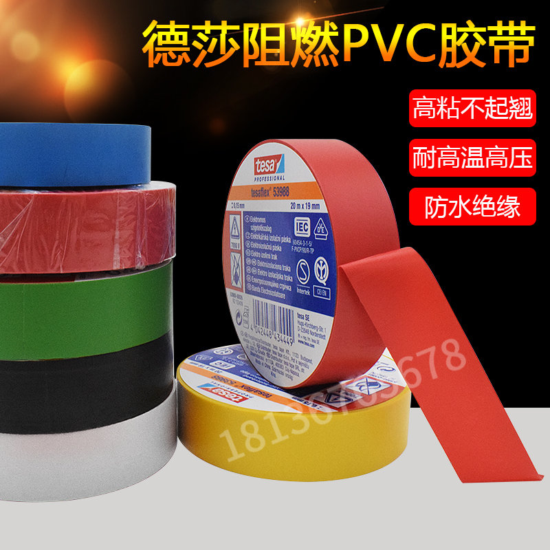 tesa德莎53988PVC电工绝缘胶带防水阻燃耐温高压无铅环保彩色线束