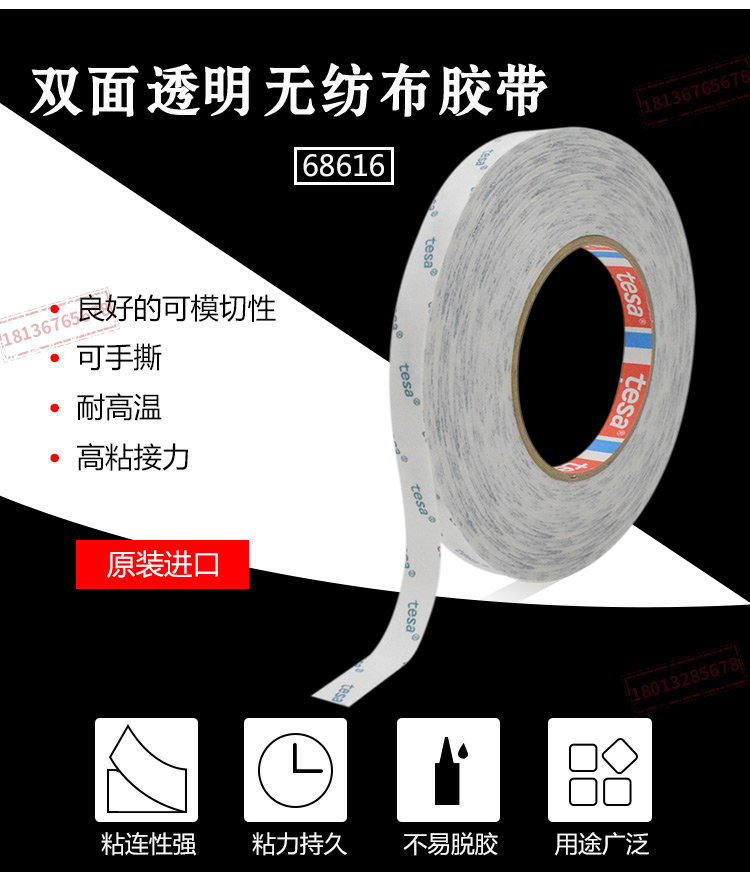 德莎无纺布双面胶tesa68616耐高温泡棉毛毡金属高粘固定模切定做