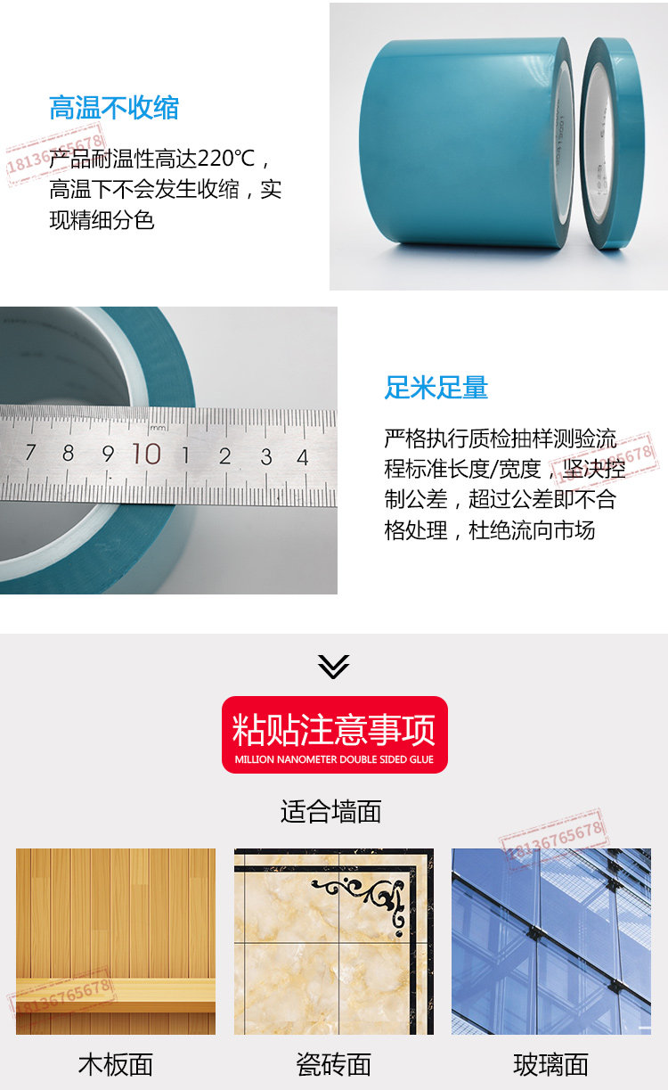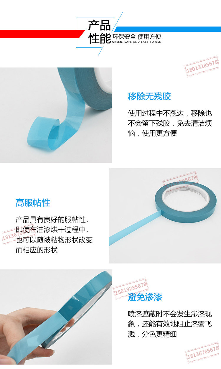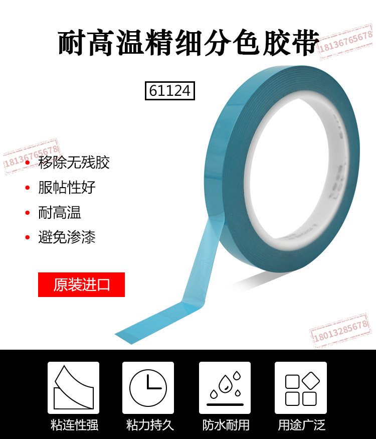 原装进口德莎61124tesa61124蓝色高温分色遮蔽胶带喷涂油漆不残胶