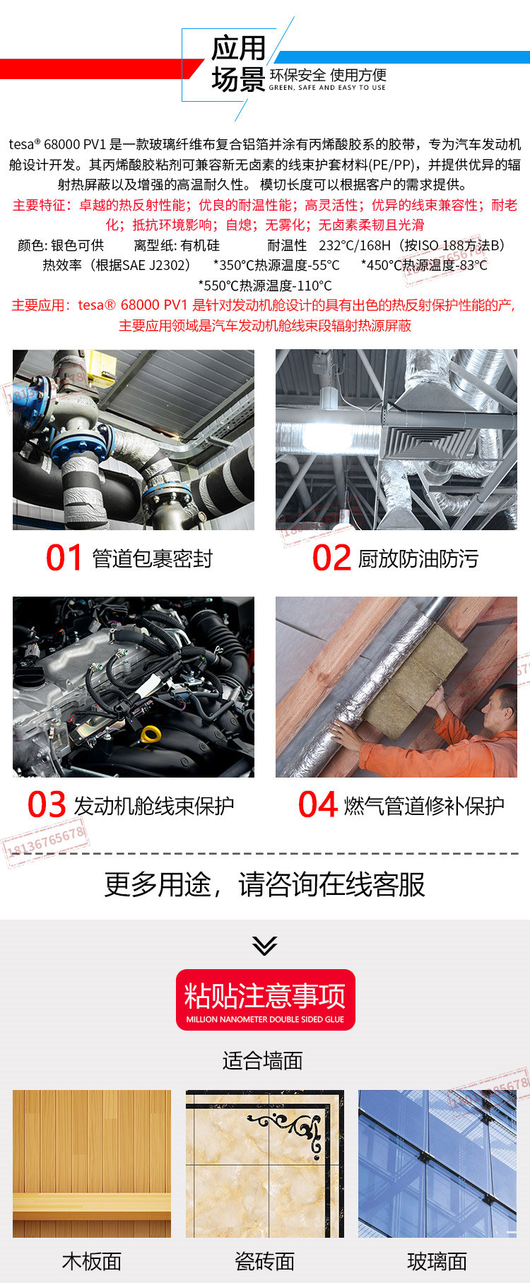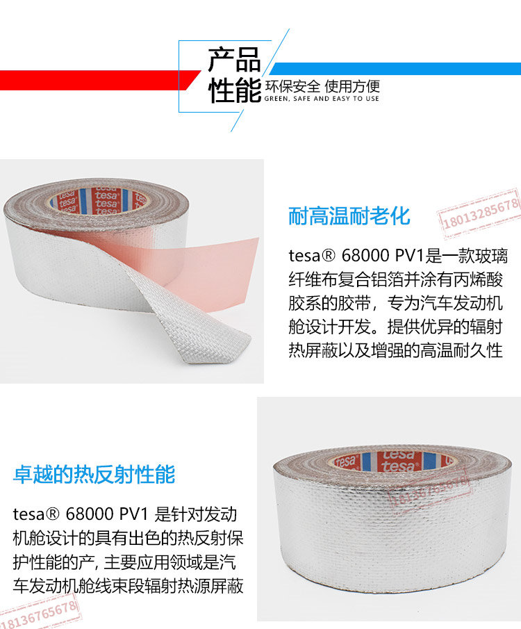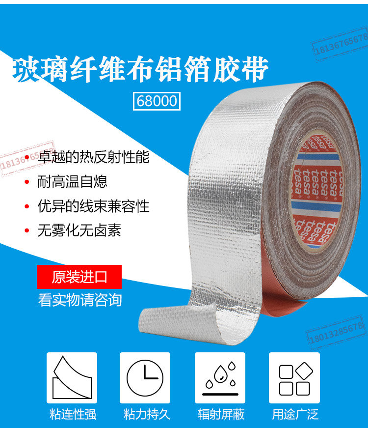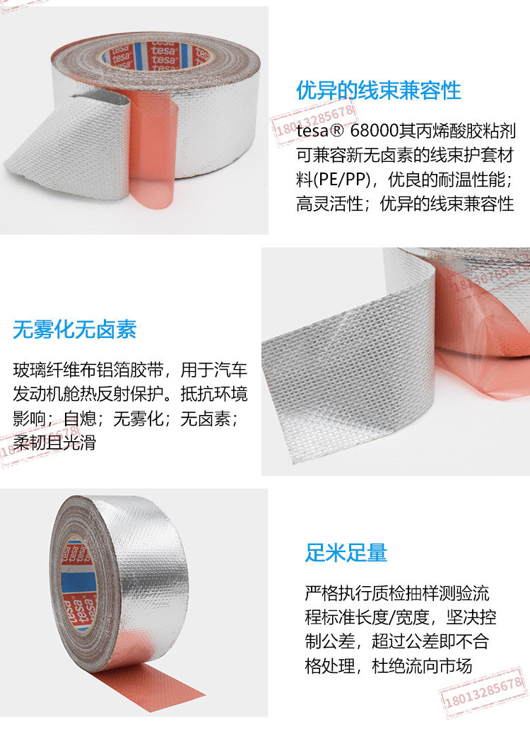 德莎68000玻璃纤维布铝箔胶带汽车发动机舱热反射保护热源屏银色
